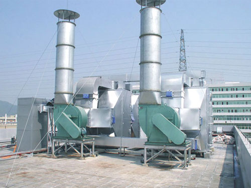 脫附出來(lái)的廢氣流量小、濃度高,經(jīng)風(fēng)機(jī)送入到換熱器,然后進(jìn)入預(yù)熱器,在電加熱器的作用下,使氣體溫度提高到250-300℃左右,再進(jìn)入催化燃燒床。有機(jī)氣體在催化劑的作用下發(fā)生無(wú)焰燃燒,被氧化為CO2和H2O,同時(shí)放出大量的熱,氣體溫度進(jìn)一部升高,該高溫氣體再經(jīng)過(guò)催化燃燒室前的換熱器預(yù)熱未經(jīng)處理的有機(jī)氣體;從換熱器出來(lái)的氣體再通過(guò)新風(fēng)入口的換熱器對(duì)脫附新鮮空氣進(jìn)行加熱。兩處換熱器正常工作后,電加熱設(shè)備可停止加熱,節(jié)約能耗。最終氣體通過(guò)煙囪引高排放。
